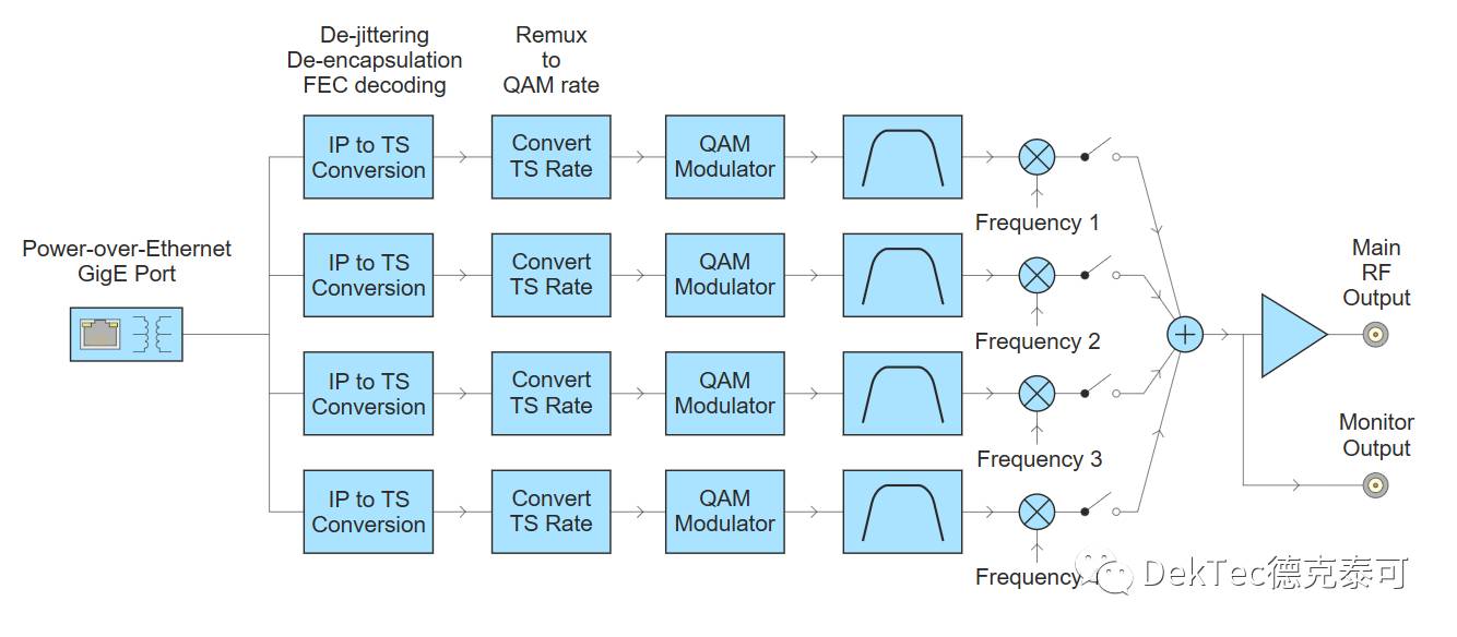 分享DekTec(德克泰可)独立IP QAM调制器,支持4x QAM调制输出,具备先进时间重建算法能有效克服IP抖动。